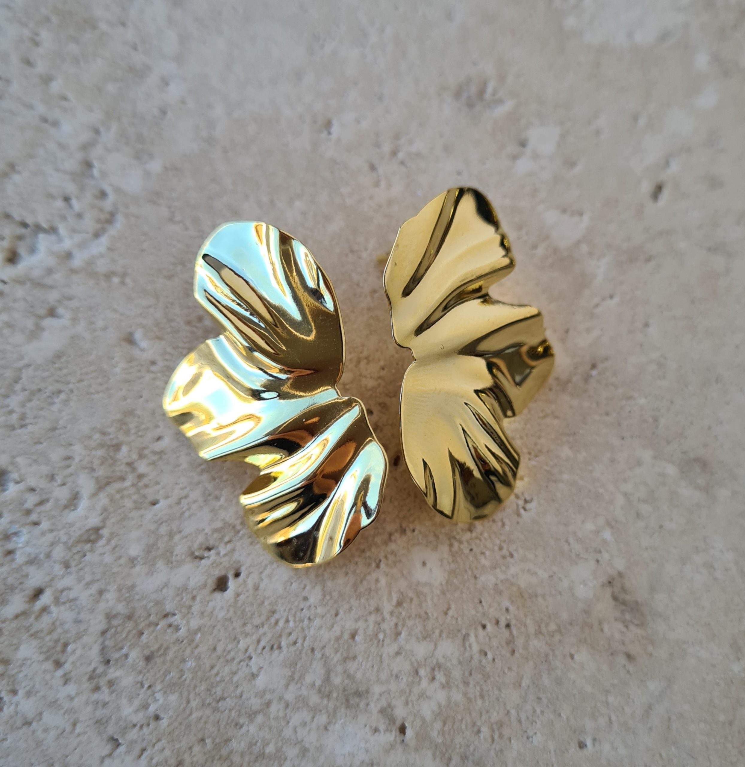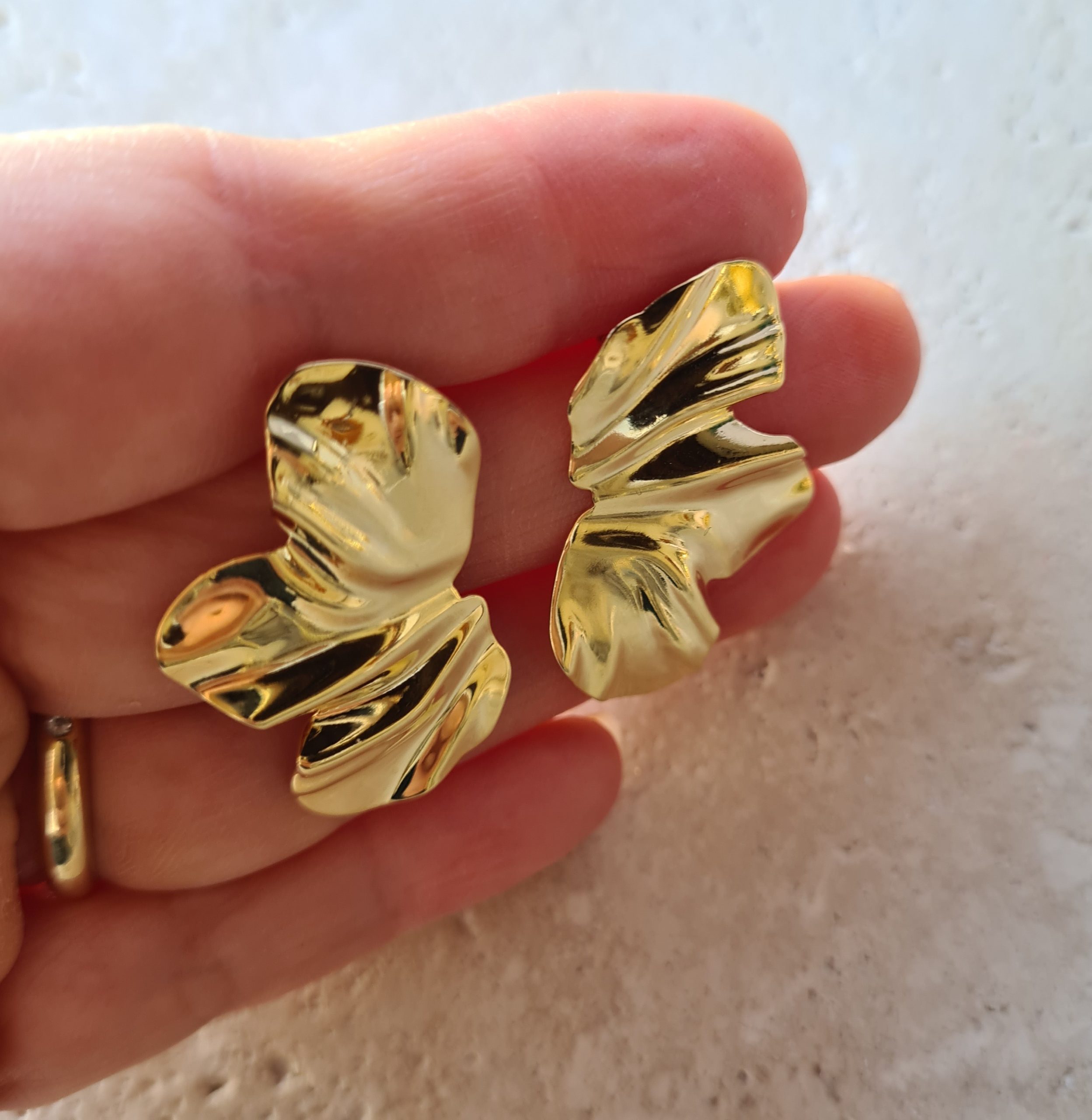 Aros hojas delgadas, tamaño 3 cms, enchape de oro 18k libre de níquel