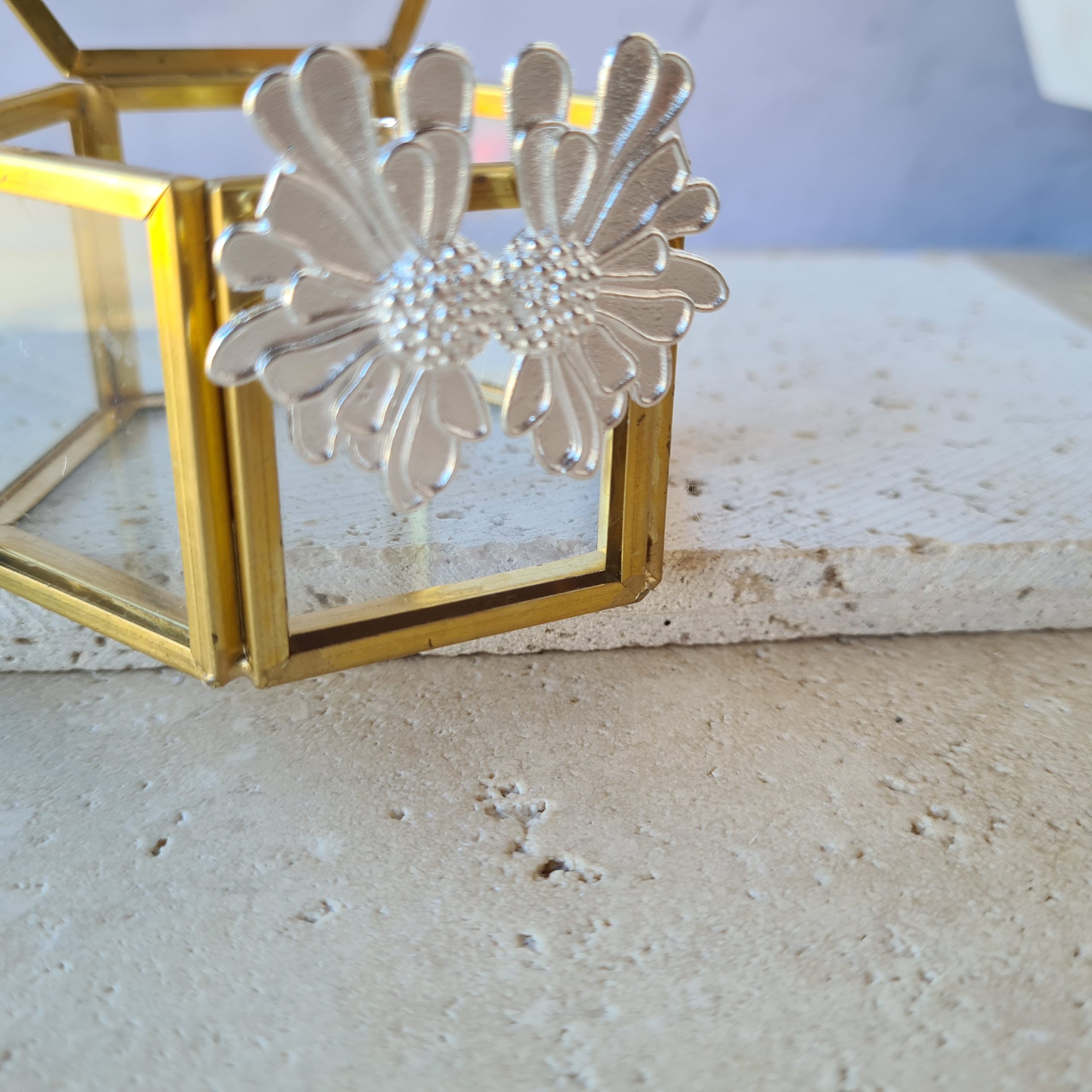 Aros flor silver, base bronce con enchape de plata 950, libres de níquel. Miden 3.5 cms aproximadamente.